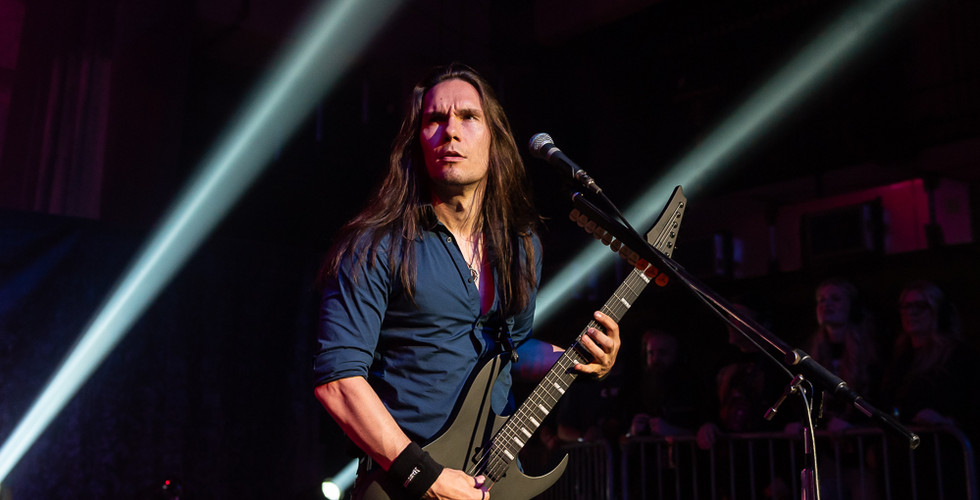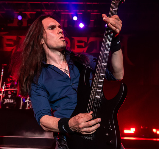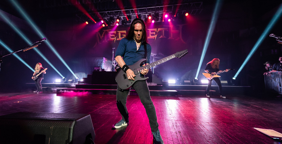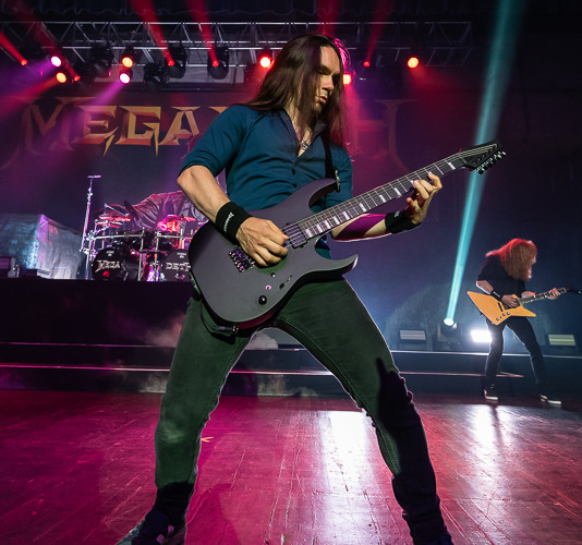 Megadeth's Teemu Mäntysaari shredding on lead guitar in Cleveland
